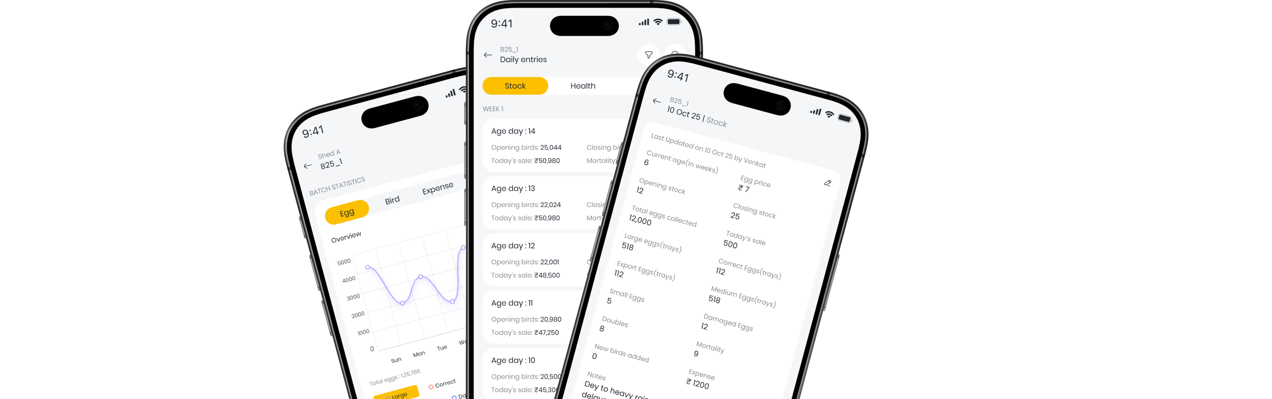 Record feed, egg counts, and farm activities in seconds — all from your phone.