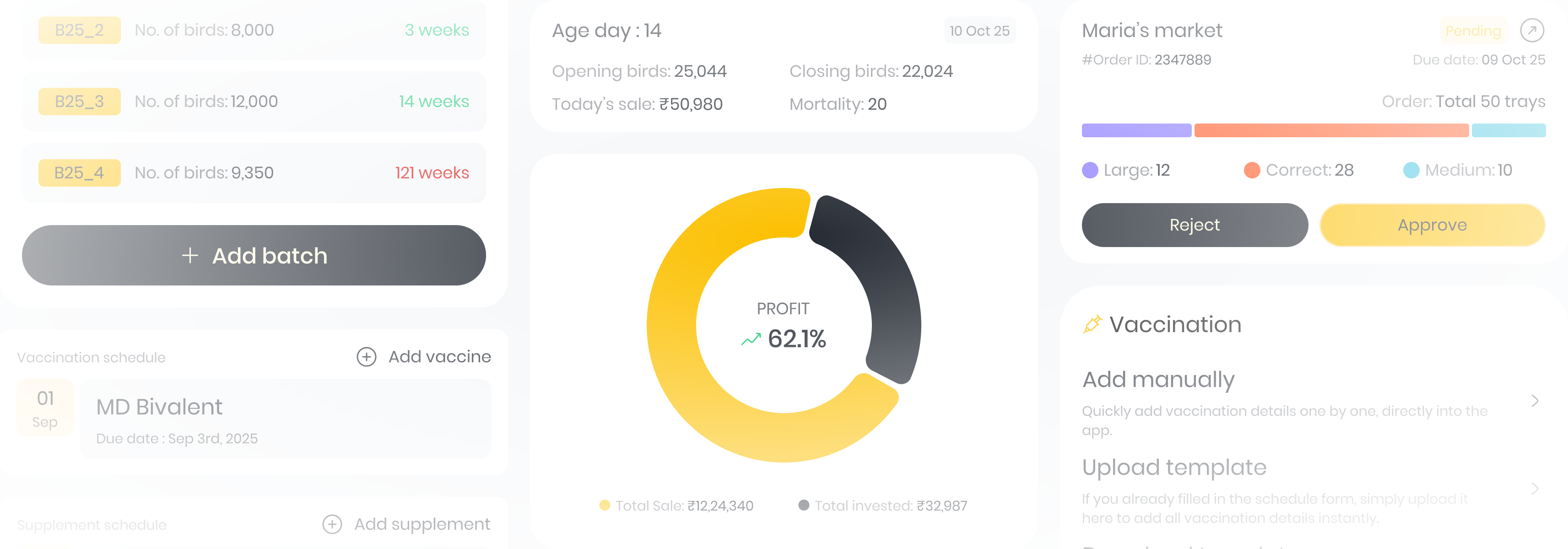 Handle data, insights, and performance all in one easy-to-use platform built for modern poultry farmers.