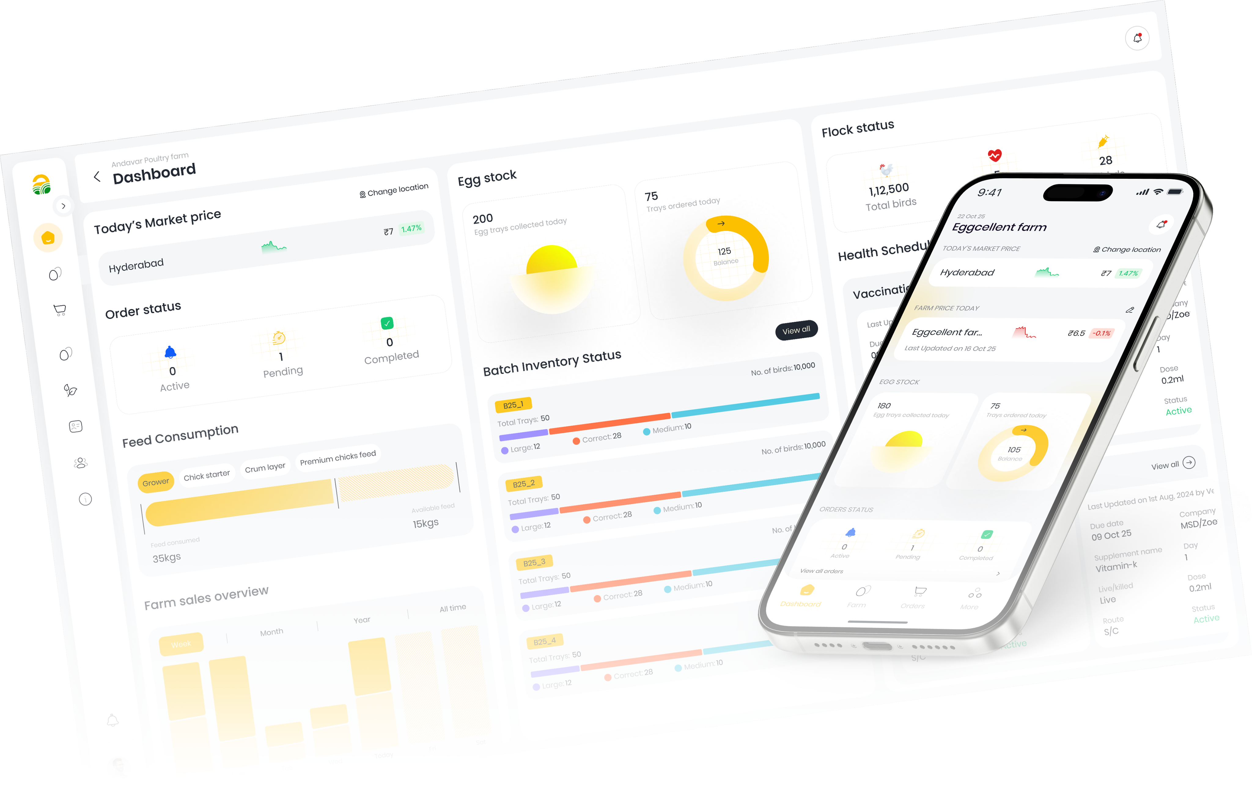 Manage flocks, track feed, and monitor egg production — all in one powerful mobile and web app.
